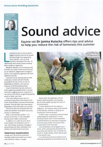 Janina Kutscha of Ardene House Vet Practice offers tips and advice to help you reduce the risk of lameness this summer.